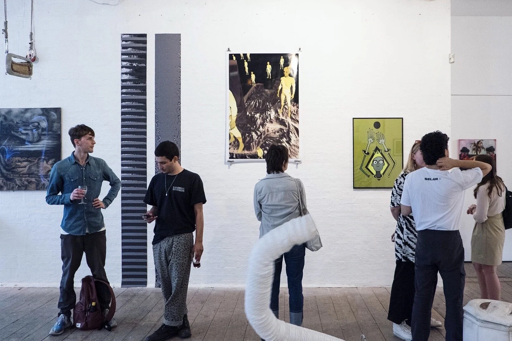 'Murmurations' presented works by a group of 60 emerging artists and recent graduates from different universities. The exhibition refers to the phenomena of ornithological murmurations; like flocks of starlings, the artists involved in this exhibition have successfully created a support network for one another which will continue to grow and evolve. The overall objective is to provide and expand this network through a series of exciting experimental exhibitions and events in London. The opening event on Friday 30 AUG 2019 was curated over 3 floors of a Victorian warehouse space in Central London. The large space offered an exciting experimental environment for mixed media, film screenings, live performances, installation art, and music.